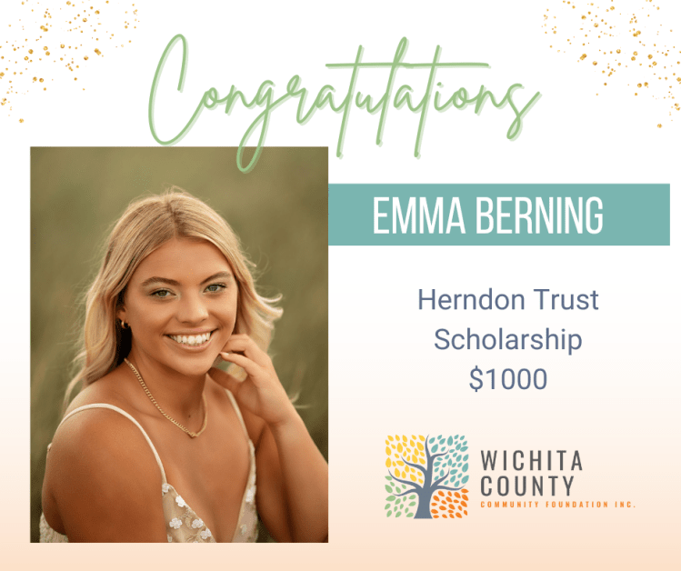 This spring, the Wichita County Community Foundation awarded $9,000 in scholarships to local students pursuing college or continuing their education. These scholarships are made possinle through generous donors who believe in the potential of our youth.