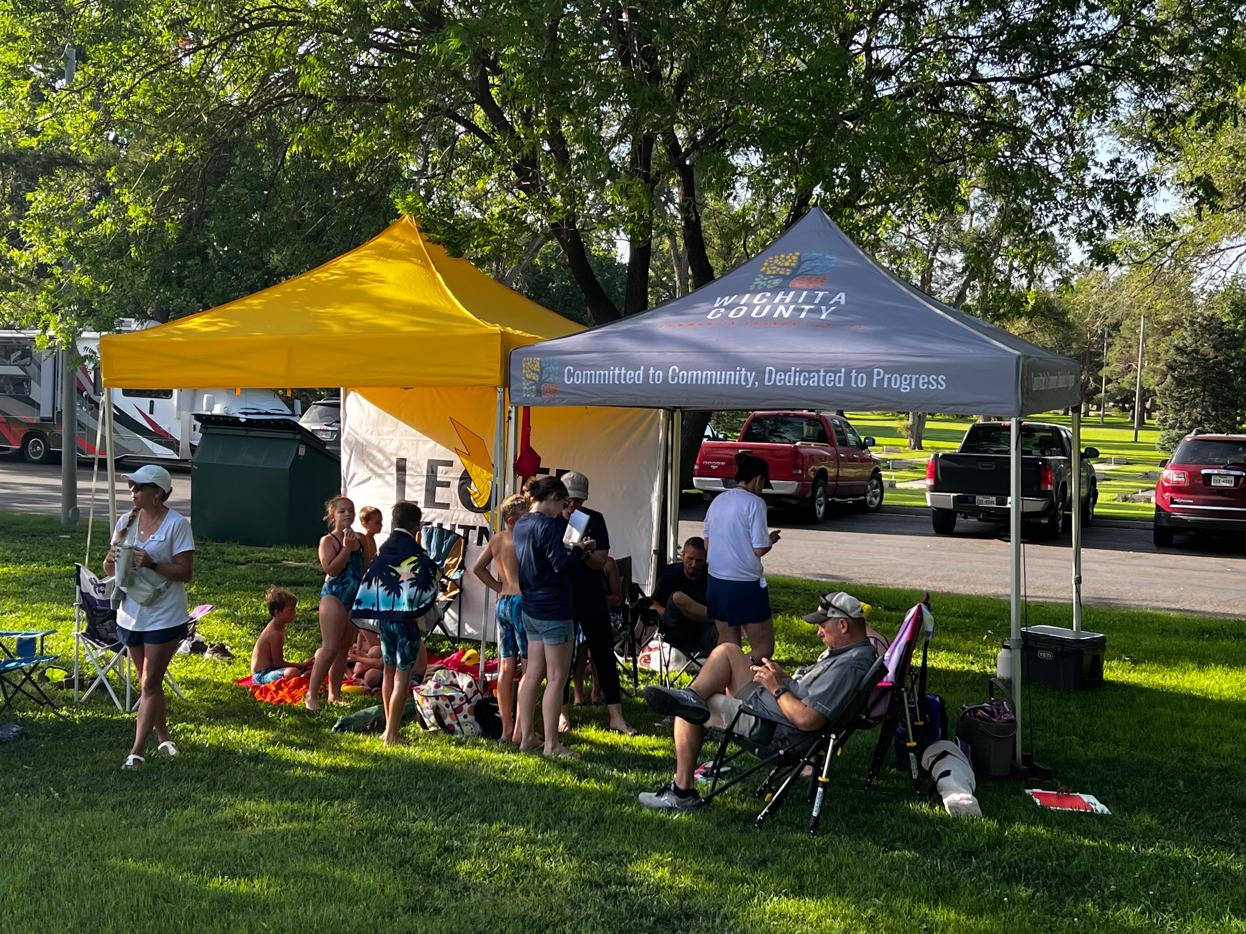 The Leoti Lightning Swim Team received a grant to purchase a new team canopy. (Pictured below) This canopy provided a place to keep everyone shaded and cool during their meets!